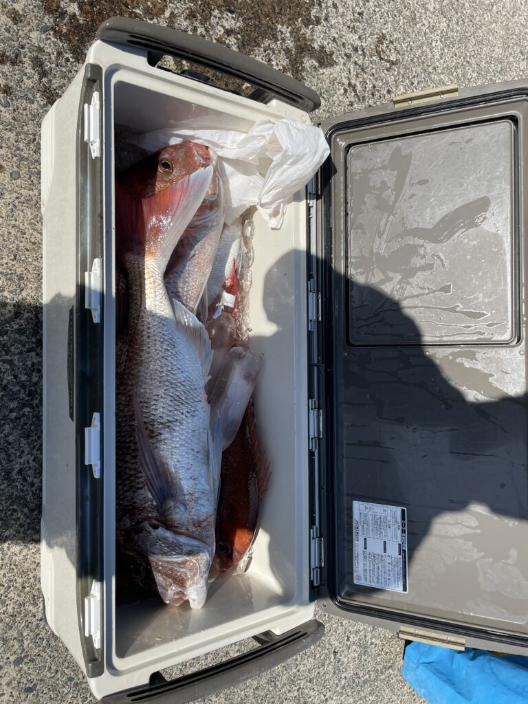 本日マダイ、メダイ兼用で狙いました。マダイ最大3、5kg頭に船中11枚でした😊メダイ、ハチビキも